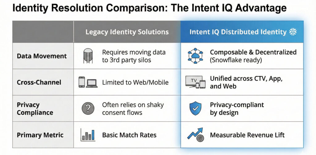 Modern identity resolution has evolved beyond a static ‘link’ between devices. We are entering the era of Composable Identity. As discussed in our recent collaboration with Snowflake, identity is now about activating first-party data directly within the data cloud. This ensures that a privacy-compliant identity is maintained without moving sensitive data, allowing for a seamless Identity Resolution process that bridges the gap between raw data and actionable media buying.